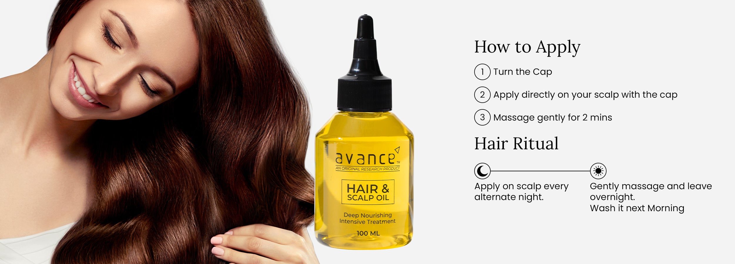 - Dispense a small amount of Avance Hair Oil into your palms.